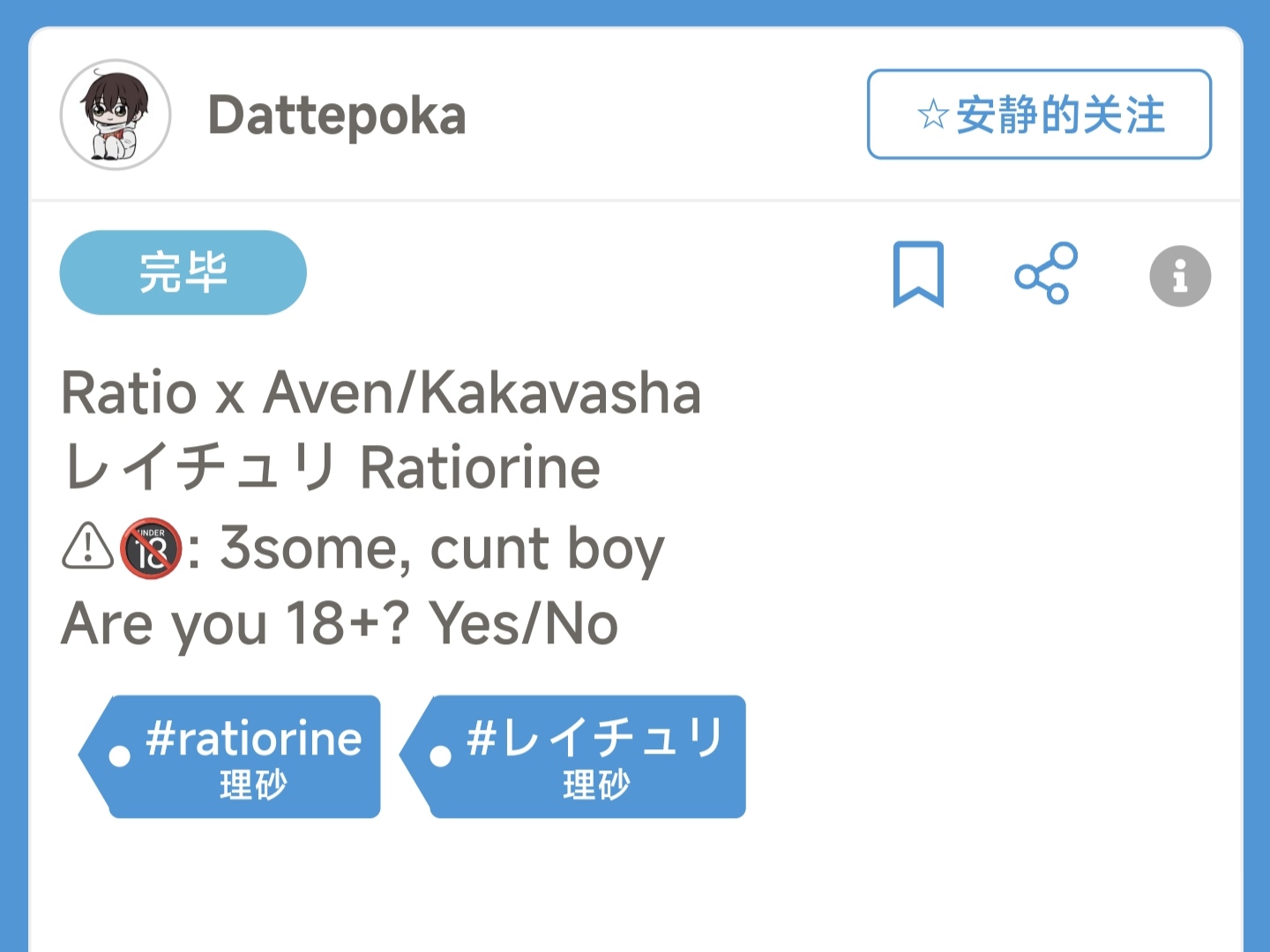 X:Dattepoka (老师发在推上的画都特别可爱,喜欢的家人们可以去关注支持老师~) 仅限论坛内交流,禁止向外传播!请尊重原画师!