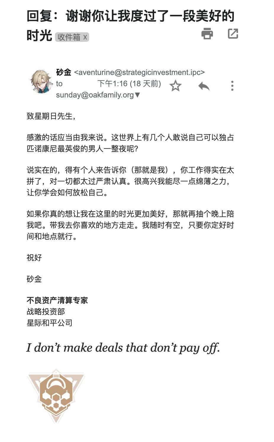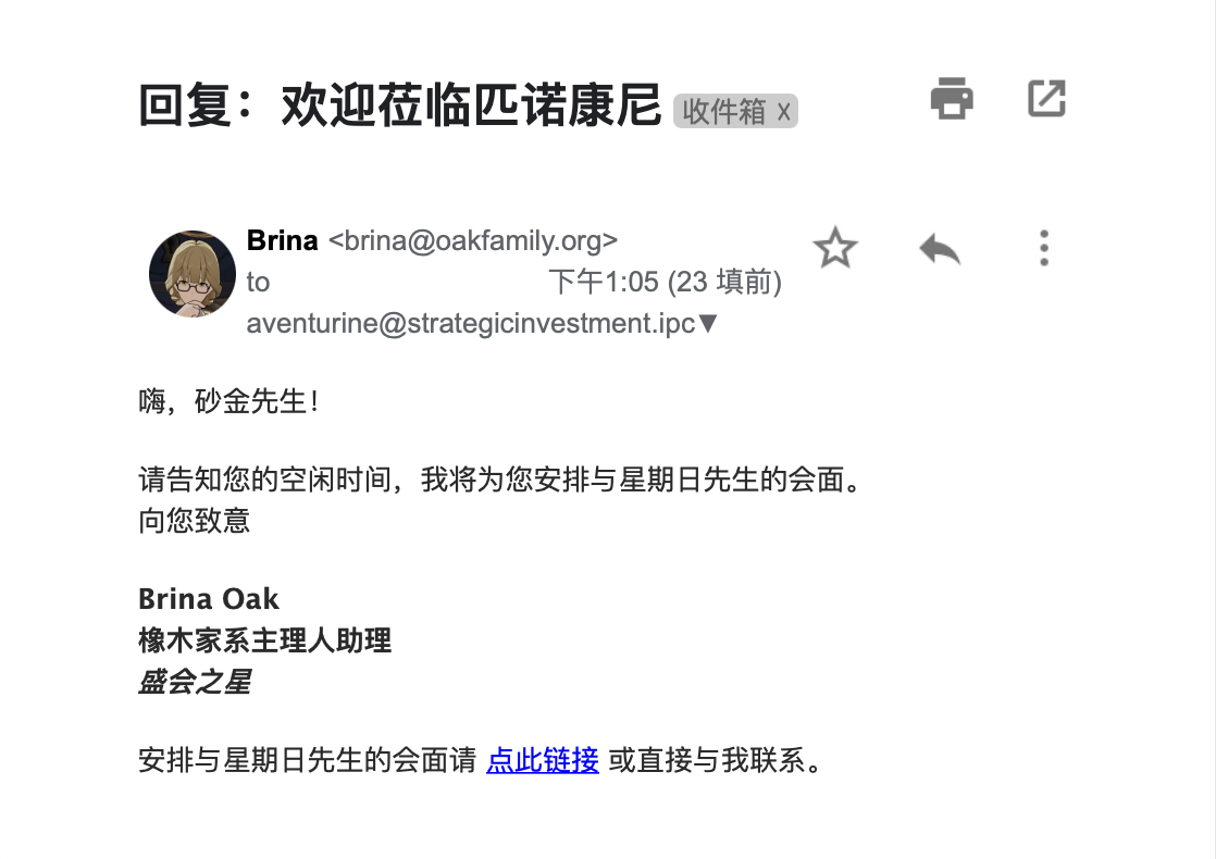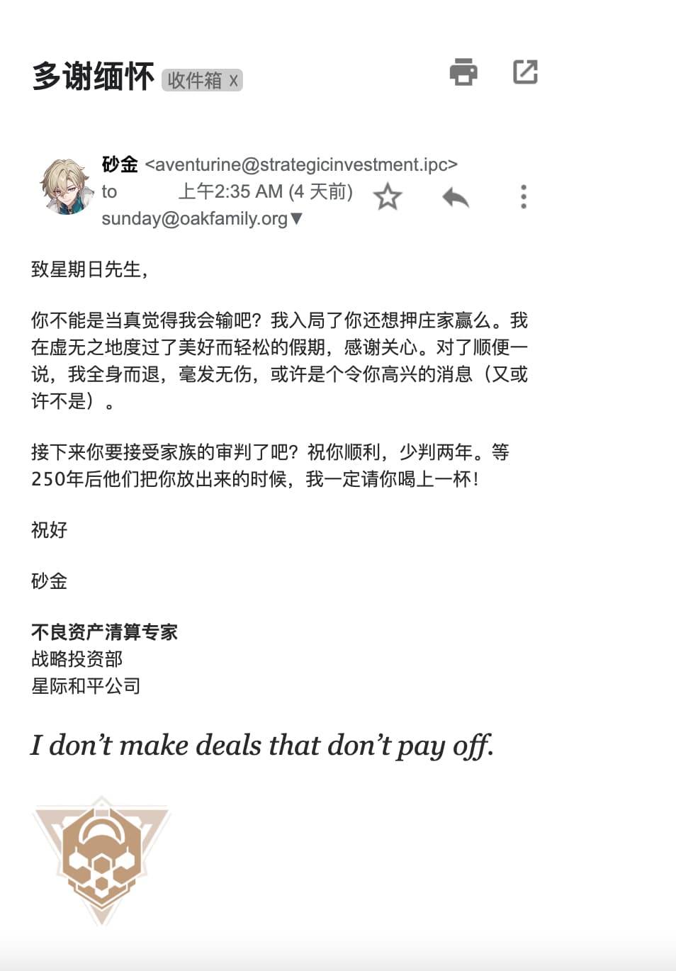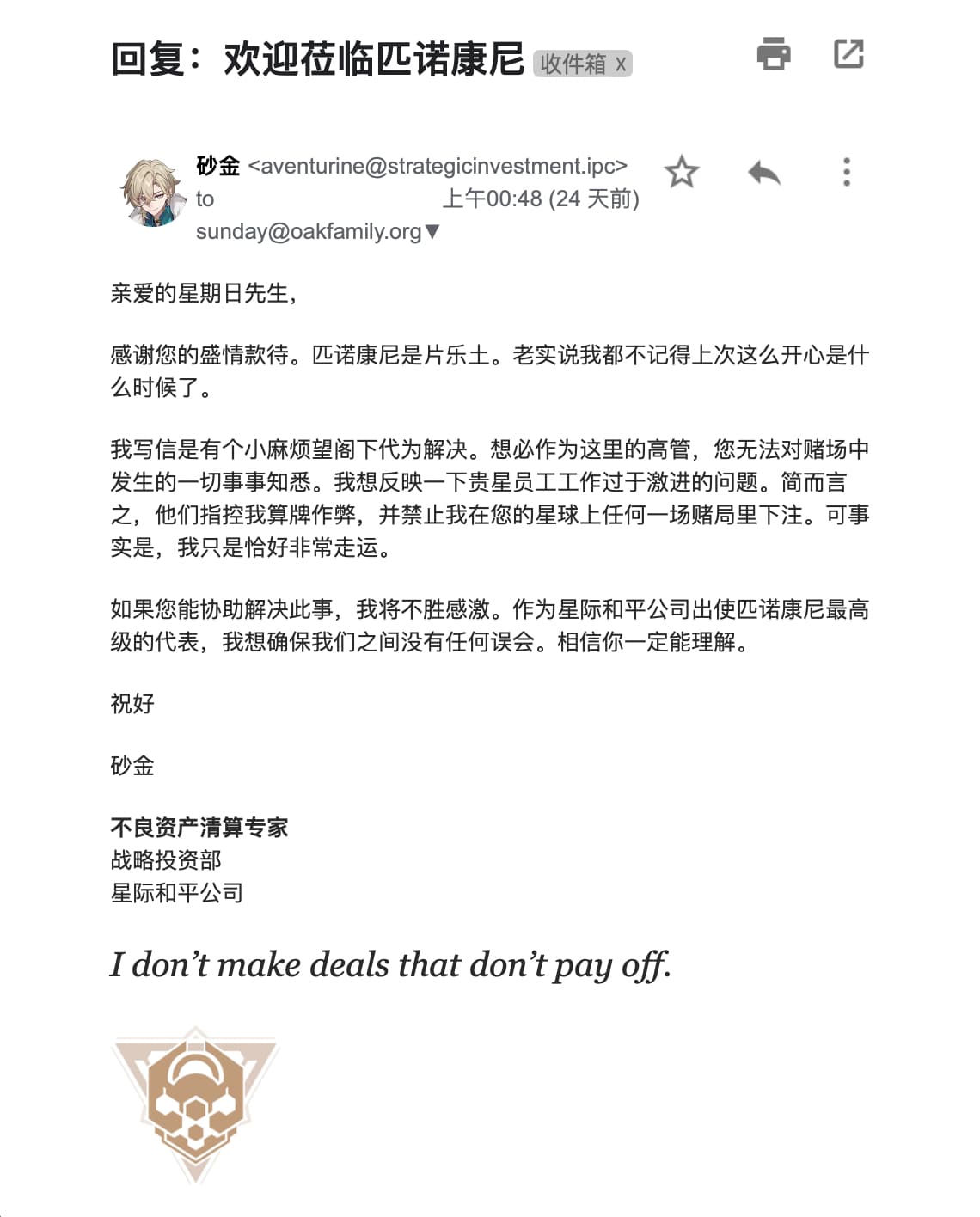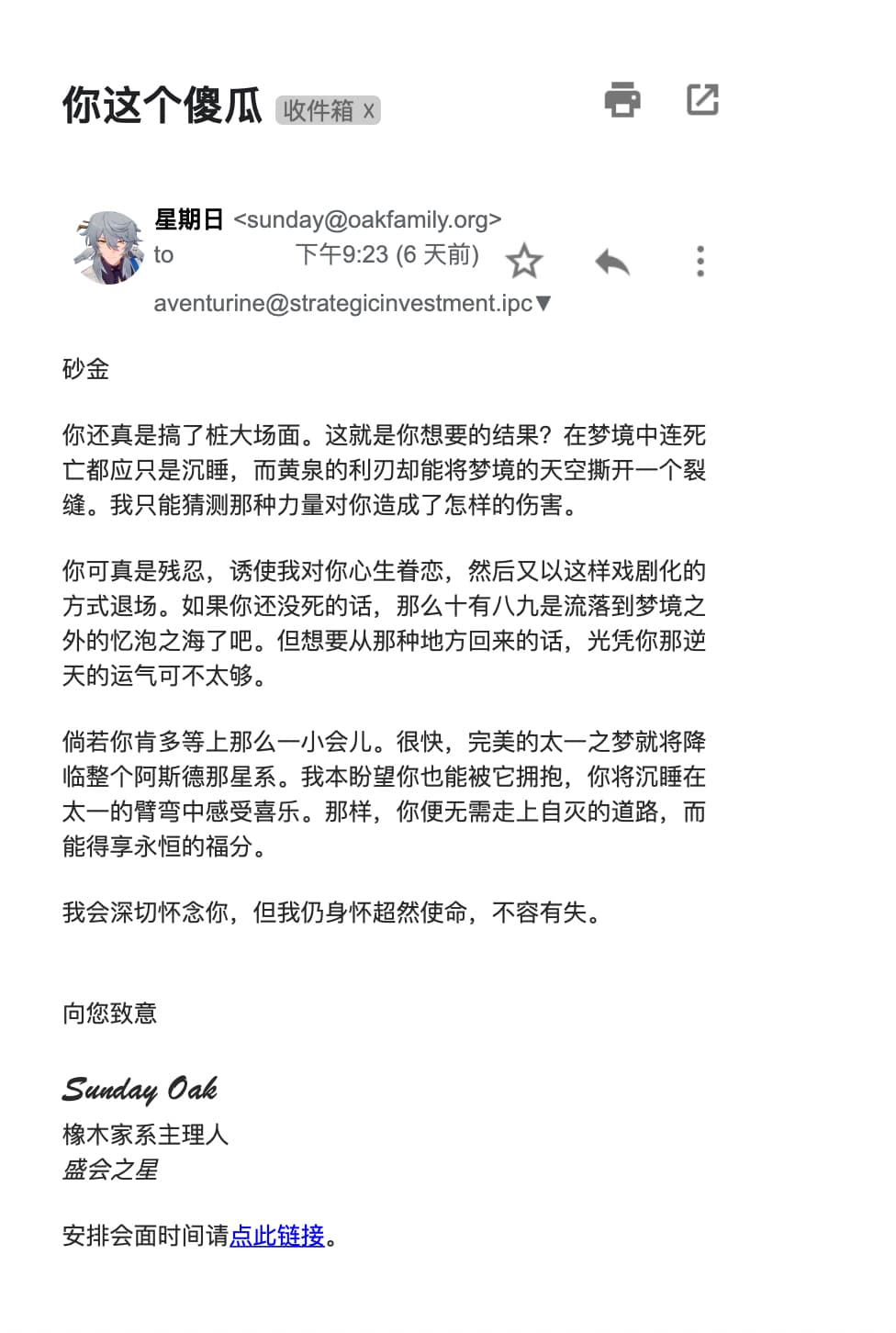 收件人: aventurine@strategicinvestment.ipc ; 发件人: sunday@oakfamily.org