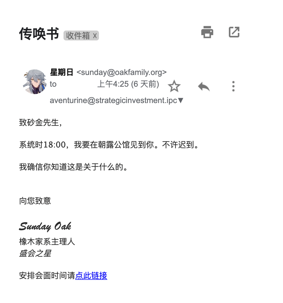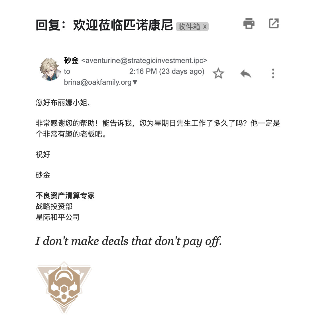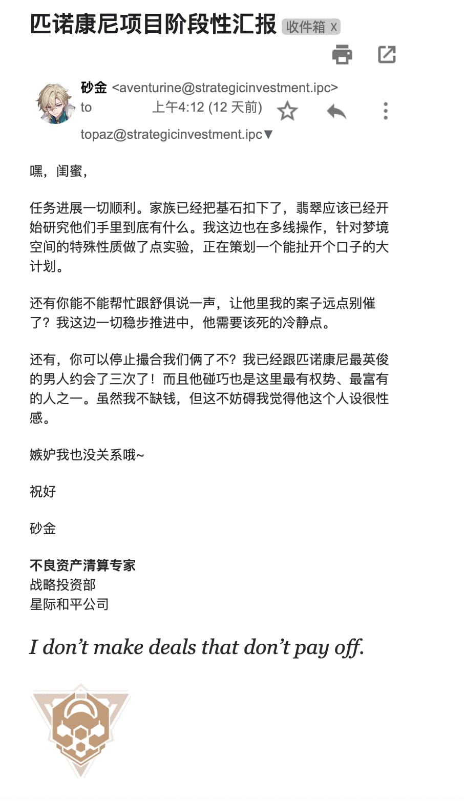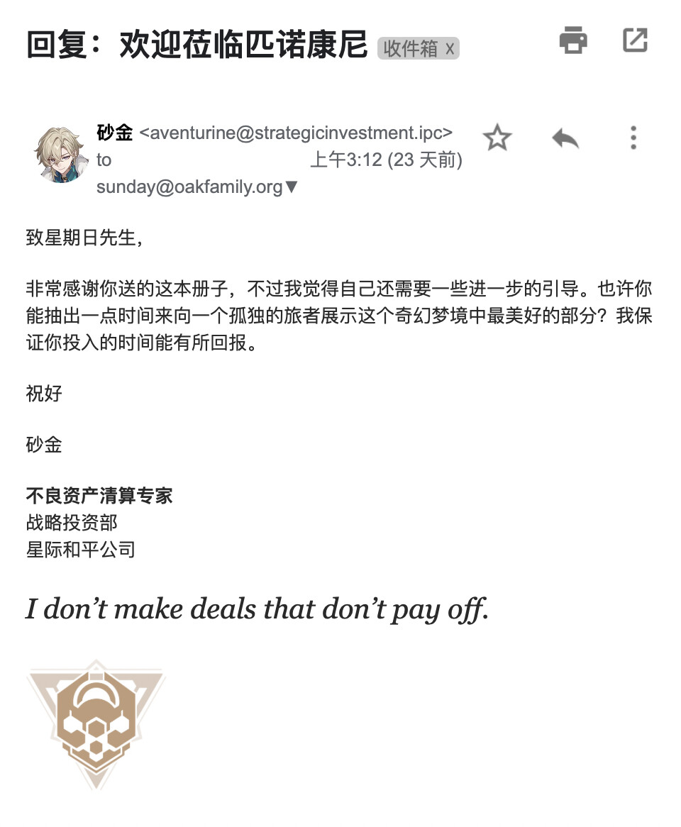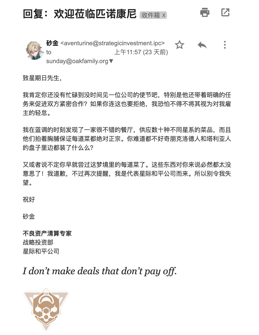 收件人: aventurine@strategicinvestment.ipc ; 发件人: sunday@oakfamily.org